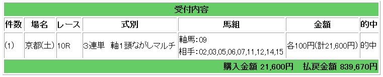 会員様には土曜日のこの1鞍で大きく勝負していただきます。