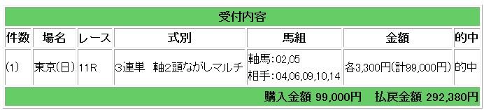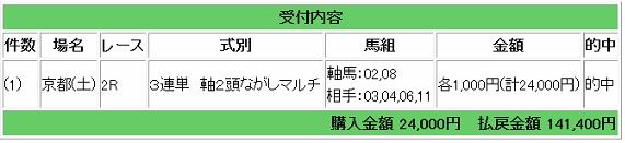 上記2頭が2,3着となり3連単141.4倍的中となり14万1400円の払い戻しとなりました。