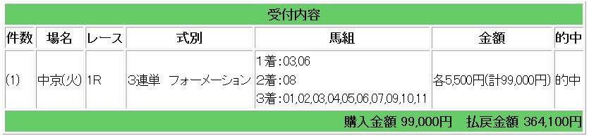 ワイド1点的中で17万円の払い戻しとなりました。