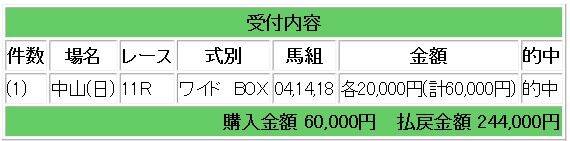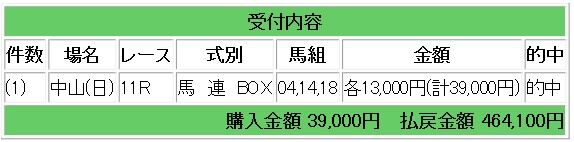 馬連3点指示で18.8倍的中となり、37万6000円の払い戻し。