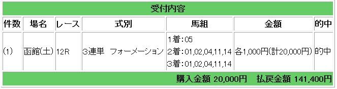 会員様情報では3連単指示で141.4倍的中となり、14万1400円の払い戻しとなりました。